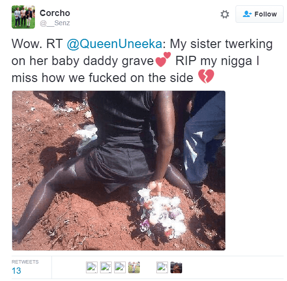 Lady shares photo of her sister twerking on her baby daddy's grave